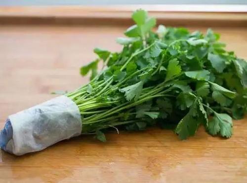 3、芹菜、香菜等可以用報(bào)紙把它的根莖部分包起來,并用繩子捆住,根部露出一寸長就好,記得不要把報(bào)紙濕著,這樣可以保存好幾天。