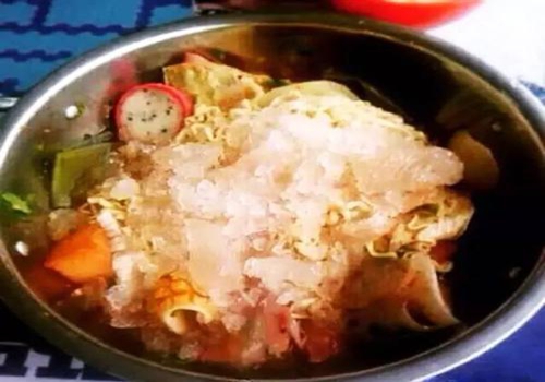 這菜很符合當(dāng)?shù)氐娘嬍沉?xí)慣,不能沒有辣,夏天想吃辣怎么辦,那就來碗冰鎮(zhèn)麻辣燙吧。很多人表示,熱的麻辣燙都吃過,冰的是什么鬼?嘿,還別小瞧,據(jù)說,這道菜在西南政法大學(xué)里,一天最多可以售出200多份!