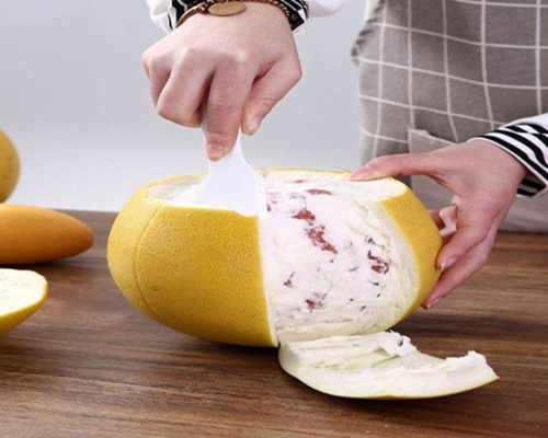 從中間開始:首先,用刀從柚子的中間切開,不要切得太深以免傷到柚子的果肉;然后,質(zhì)壁分離,把柚子皮的上、下兩部分剝開;最后,用繩子從柚子的縫隙拉開,分成一瓣一瓣的,或者直接用手硬掰。對于還有一層皮,可用牙簽放到柚子和果肉之間,這樣就很容易剝開,而且還很干凈。